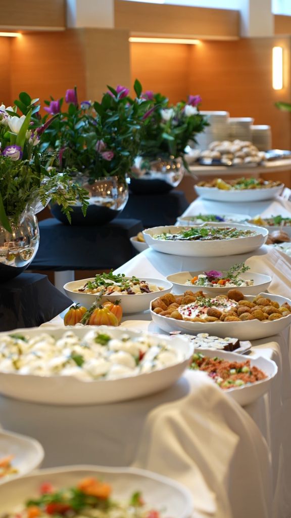 Des buffets pensés pour des équipes aux goûts variés — italien, libanais, asiatique, franco-belge. Sur 50 ou 300 personnes, chacun trouve son compte.